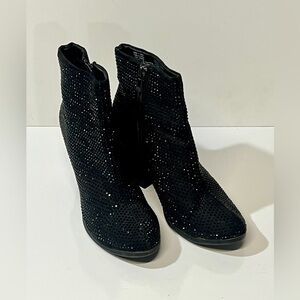 Women's black sequin heeled ankle boots from JUICY COUTURE, size 7. Boots have " heel and side zip.