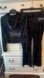Luxurious black velour Juicy Couture hoodie and pants set with sparkling silver rhinestone logo. Perfect for casual elegance.