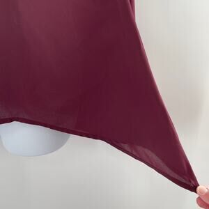 JUICY COUTURE Burgundy Bell Sleeve Rhinestone Trim Keyhole V-Neck Top Blouse Size: XS Details: Beautiful oversize flowing burgundy long bell sleeve blouse with rhinestone trim, V-neck keyhole cutout, asymmetric shark-bite hem. Color: Maroon | Wine | Cranberry | Burgundy Materials: 100% Polyester RN #: 73277 Condition: Pre-owned, gently used. Approximate Measurements: See photos. 17.5" between armpits 23-26" length Note: Some pictures may be lightened to show detail. Style Ideas Boho Peasant Casual Bohemian Statement Sleeve Flowy Bling Glam Business Casual