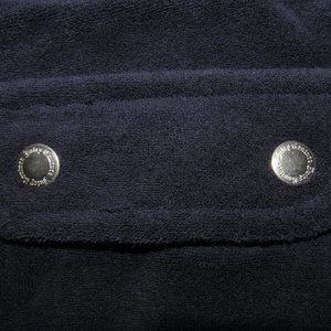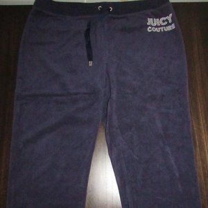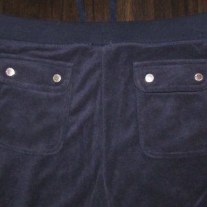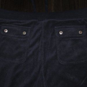 JUICY COUTURE CROP NAVY BLUE TERRY CLOTH SWEAT PANTS-LOGO ON FRONT-TIE WAIST-LG