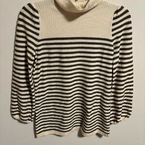 JUICY COUTURE Cashmere Sweater Tunic Striped Turtleneck Cream Brown- Size Medium