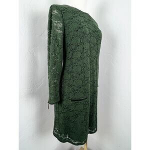 JUICY COUTURE Cire Juniper Green Lace & Leather Dress (Womens: Med)