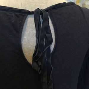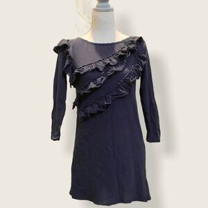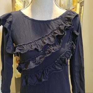 JUICY COUTURE Comfy Cotton Tunic with Ruffles. Size: label says P, but fits like Small/Medium. Approximate measurements: Length - 30”, across chest - 17” (measured from armpit to armpit laying flat). Features 3/4 sleeves (approximately 18” long), fun ruffles across chest, adorable satin tie in the back. Very comfortable, breathable and stretchable material. Perfect for travel or just lounging around.