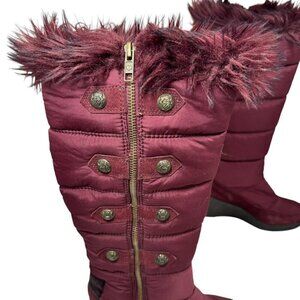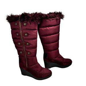 JUICY COUTURE Everest Quilted Faux Fur Lined Wedge Boots Logo Button Size 7.5
