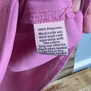 ROUND NECKLINE. JEWELED NECKLINE. RUFFLED LAYERED CAP SLEEVES. GLAZE FLOWY MATERIAL. KEYHOLE BUTTON CLOSURE ON BACK. NO FLAWS. SEE PICS FOR MATERIAL TAG. OFFERS WELCOME.