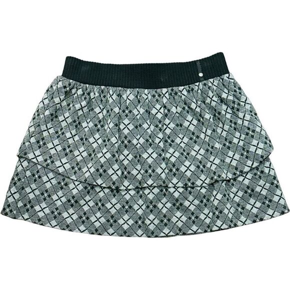 JUICY COUTURE Gray Grey Black Plaid Wool Cotton Elastic Waist Pull On Y2K Vibes Mini Skirt Size Small
