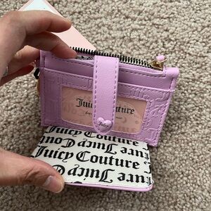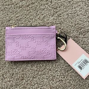 JUICY COUTURE Heartless Elongated Card Case with Keyring in Fondant Pink Color/ closer to lavender, flap with snap closure, 3 card holder pockets & id card holder with clear window l, zippered coin pocket, faux leather material, fabric interior lining with logo design. Brand new with Tag