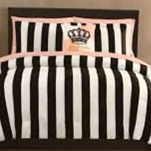 JUICY COUTURE Home Pillow Sham Blue and White Cabana Stripes and Pink Standard Size