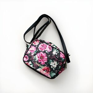 JUICY COUTURE LA, PINK FLORAL BAG, ADJUSTABLE CROSSBODY BAG, 9" W X 7"H,