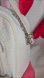 HANDBAG: Gorgeous rhinestone detail on this velour bowler. Top handles and fixed, adjustable crossbody/shoulder strap. Adorable rhinestone heart charm on zipper. Inner zip pocket and slip pockets. Approximately 10.5w X 8h x 4.5 deep. Detachable pouch has zip closure. Approximately 4.5h X 3.5 w.