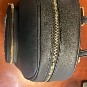 The JUICY COUTURE Obsession Medium Backpack in Black Licorice with Bling Logo Rhinestones is a stylish and versatile bag suitable for various occasions. This medium-sized backpack features a zip closure, black faux leather exterior, gold-plated hardware accents, and a lined interior with inner pockets for organization. The rhinestone accents add a touch of sparkle, making it a standout piece for travel, parties, casual outings, workwear, or business meetings. The adjustable strap provides comfort and convenience, while the matte finish gives it a sleek and modern look. Perfect for adding a touch of designer flair to your outfit.