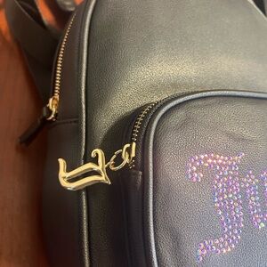 JUICY COUTURE Obsession Backpack Black Licorice Bling Logo Rhinestones Bag Y2K