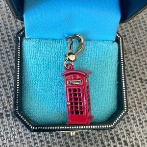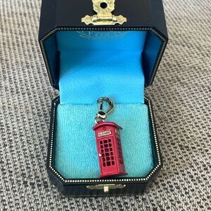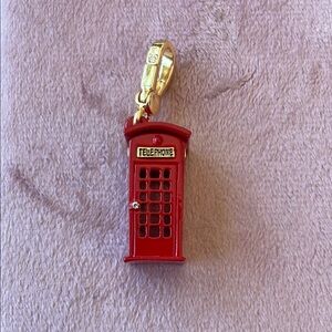 Charming red telephone booth charm with gold accents. Perfect for adding a touch of London to your collection.