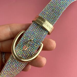 JUICY COUTURE SILVER RHINESTONES GOLD BUCKLE WHITE LEATHER BELT