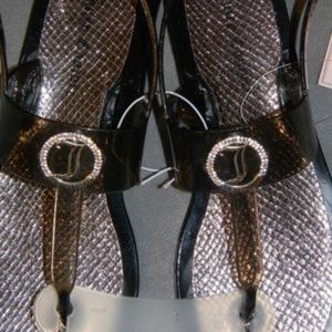 JUICY COUTURE Sandals T-Strap Jelly Crystal Logo Black Sizes M XL