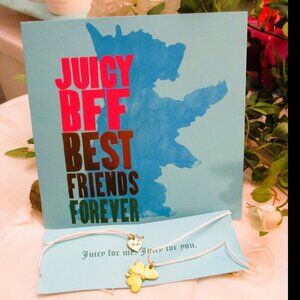 Each set consists of two gold-plated charm necklaces and a placard featuring the JUICY Name and BFF statement.