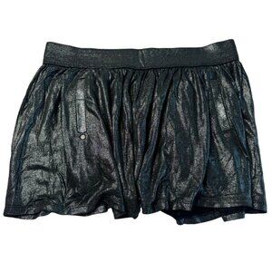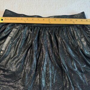 JUICY COUTURE Silver Metallic Lightweight Skater Mini Pull-on Skirt Pockets SZ L