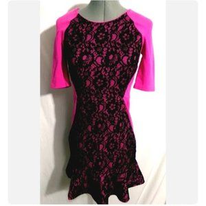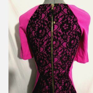 JUICY COUTURE Stretch knit Tulip retro Dress sz 0 Hot Pink Black Lace scoop neck