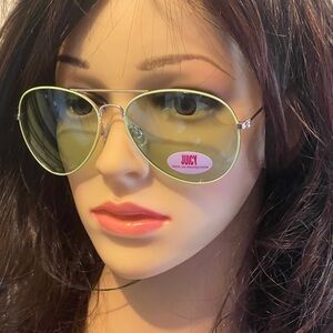 100% UV Protection, Super Chic Green Sunglasses for every day use! Elevate your style with these designer Juicy Couture Tony Sunglasses. The gold tone frame, color make them a fashionable addition to any outfit. The green lens are tinted with 100% UVA & UVB protection, featuring a plastic and polycarbonate material.
