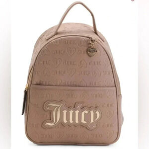 Brand new Juicy Couture Upgrade U Medium Backpack. Chic, trendy must have backpack in the perfect fall Cafe color with silver toned hardware. Top Carry handle and adjustable backpack straps with brand logo accent, zipper feature and brand logo charm in a silver tone hardware, debossed brand logo design and large logo on front of bag. Lightweight and functional. This is a beautiful high end bag. The logo accents go very beautifully with the cafe color of the bag. Brand new with tags.