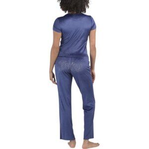 JUICY COUTURE Velvet Fleece Lounge Fitted Tee And Pants Set With Rhinestone Deta
