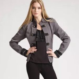 JUICY COUTURE Womens Gray Black Cotton Denim Military Cadet Long-Sleeve Jacket S