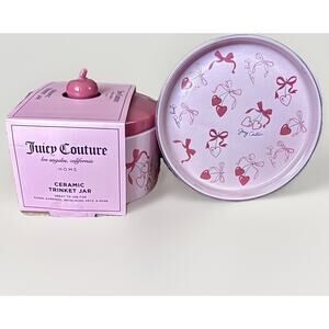 JUICY COUTURE Y2K Ceramic Jewelry Box Trinket Jar w/Tray Lid Cherry Bow Coquette