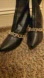 Step out in style with these elegant black leather heeled boots. Featuring a striking gold chain detail, these boots are perfect for any occasion.