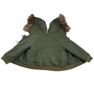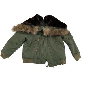 JUICY JACKET WITH FAUX FUR LINED HOOD SIZE:6 ARMY GREEN LARGE BUTTON AND ZIP