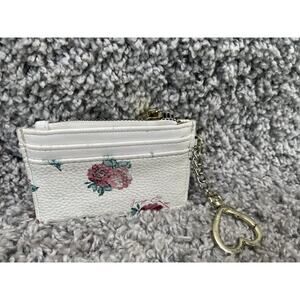 JUICY Small White Rose Floral Bi Fold Zippered Wallet & Card Holder Set