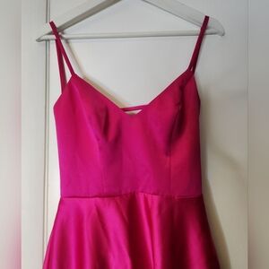 JULES AND CLEO DAVID'S BRIDAL Satin Spaghetti Strap A Line Dress Hot Pink Size 4