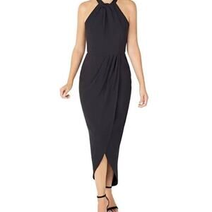 JULIA JORDAN Knot Halter Neck Sleeveless Faux Wrap Tulip Hem Midi Dress 4