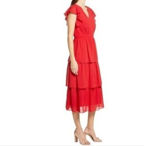 JULIA Jordan Texture Flutter Sleeve Tiered Midi Dress