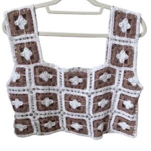 JULIA by Love J Square Crochet Cropped Tan Tank Top Size Large