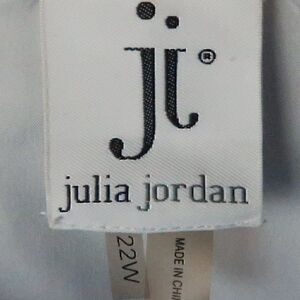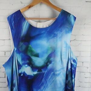 BLUE TROPICAL ABSTRACT SLEEVELESS ROUND NECK ASYMETRICAL HEM MIDI SHIFT DRESS LINED SIZE 22W BY JULIA JORDAN PRE OWNED NO FLAWS