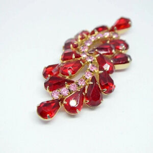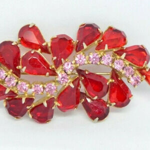 JULIANA D&E Gold Tone Red Pink Glass Flower Pin Brooch Vintage