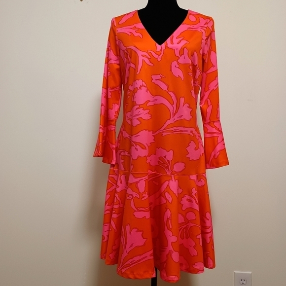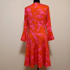 JULIE Brown New York Neon Pink and Orange Dress Sz M