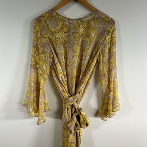 JULIE HARRAH Dress Yellow Floral Maxi Dress Tie Waist XS