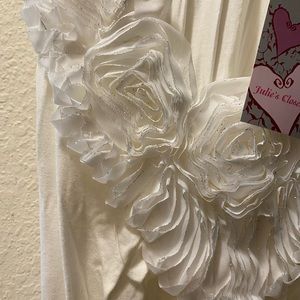 NWT JULIE’S CLOSET TOP- Cream/Off White. Rose flower trim with silver in front.