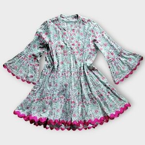 JULIET DUNN Temple Flower Flare Dress Fuchsia Aqua Size 2