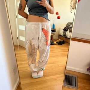 Juliette johnstone designer sweatpants featuring a vibrant butterfly print. Perfect for casual wear or even out on the town. Rare, only a small amount were produced. Fit up TO XL