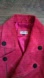 Bold red long sleeve jacket with black accents and a black belt. Zipper closure on front.
