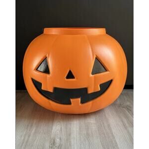 The Large JUMBO Target Halloween Pumpkin Pail Candy Bucket Blow Mold with Handle is a festive and fun addition to your Halloween decor. Made of durable orange plastic, this pumpkins are perfect for collecting candy on Halloween. The jumbo size makes it ideal for carving or displaying as part of your holiday decorations, and the pumpkin pattern adds a touch of seasonal cheer. This Target brand bucket is a must-have for any Halloween celebration.