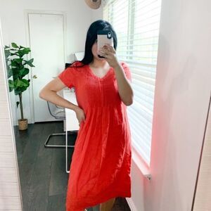 JUMP 100% Linen V-Neck Embroidered Midi Dress Minimalist Shift Relaxed Lagenlook