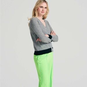Jumper 1234 cashmere cardigan. Lighter weight cashmere vee neck cardigan in mid grey with contrast black ribs. We've never offered this cardigan for winter before, no idea why not! Oh and it's true to size.