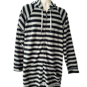 JUMPIN JAMMERZ Black & Gray Striped Hooded Footed Onesie Pajama - Unisex Size L