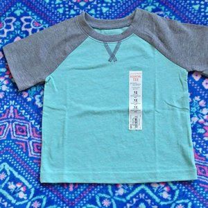 JUMPING BEANS baby boy shirt teal blue w/gray, 12 month, k-325