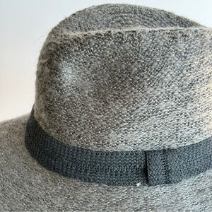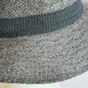 Pre-owned Excellent, this JUNE 21 floppy fedora features a soft knit texture in a deep charcoal shade with a pinched crown and a relaxed medium brim—ideal for fall and winter outings, travel days, and everyday shade.