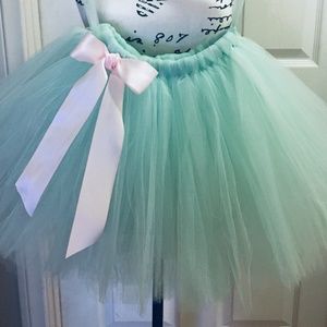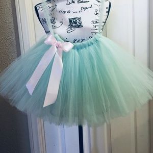 JUNIOR MINT: soft mint tutu with blush satin ribbon - custom made, super cute hand-tied full and fluffy tutu skirt with coordinating ribbons and satin bow on elastic waistband. *(available in mid-calf/tea-length) Available in additional sizes at www.adinaballerina.com
