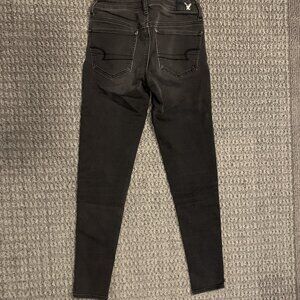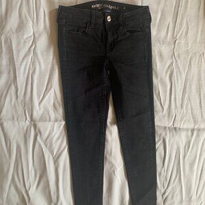 -Brand: AEO-Size: 2 Reg-Inseam: 27", Waist 24"-Color: Black Charcoal, Super Stretch Low-Rise Jeggings-# 2776